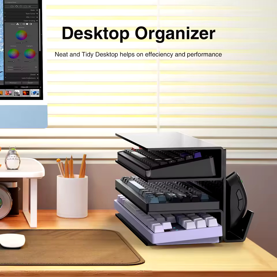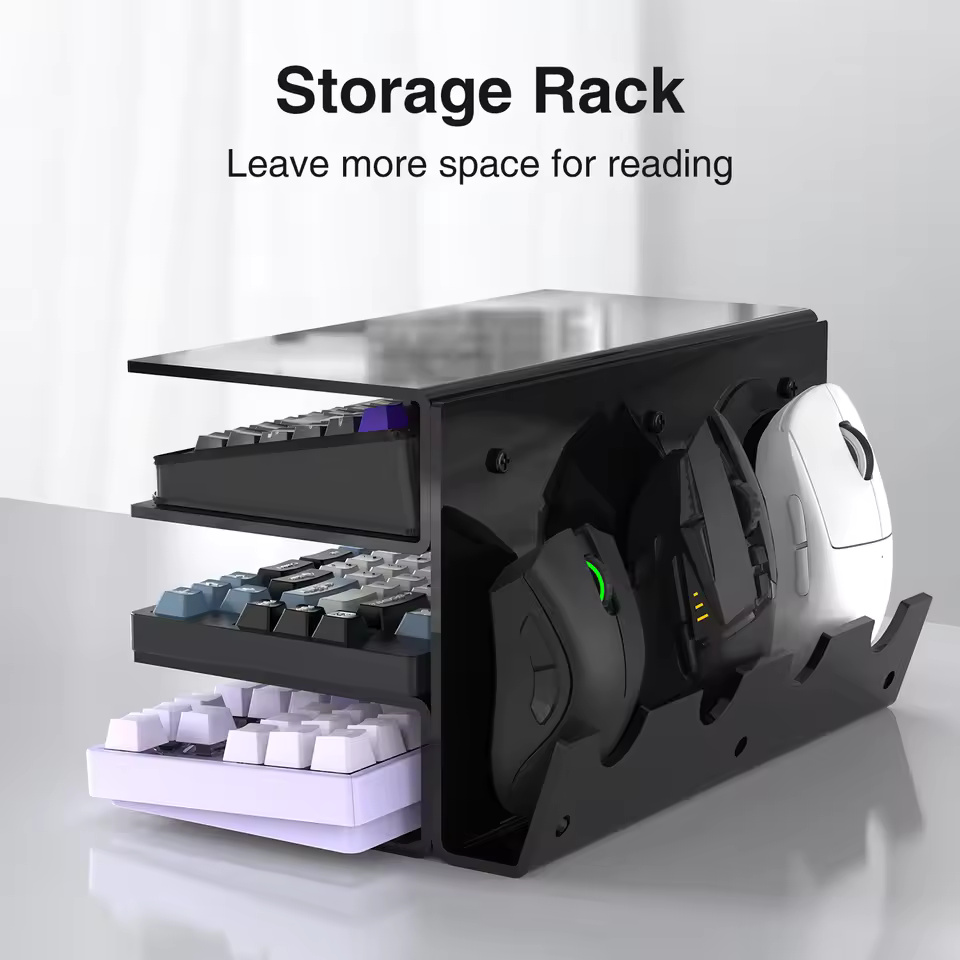 Acrylic Keyboard Plate Display Stand – 3-Tier Ergonomic Storage for Mechanical Keyboards & Mouse | Stylish Transparent Holder